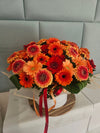 Protože gerbery jsou aranžovány do vlhké hmoty, nezapomeňte boxík po několika dnech zalít.