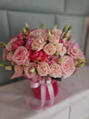 Monochromatický růžový květinový box – romantika a něžná elegance