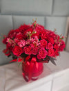 Udělejte silný dojem s tímto červeným květinovým aranžmá. Zářivá červená barva symbolizuje lásku, vášeň, energii a vzrušení, takže je to perfektní dárek k vyjádření vašich nejhlubších emocí.