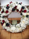 This funeral floral arrangement can be laid on a stand in front of the coffin, flowers are arranged in a special Oasis material that keeps them fresh and moist.